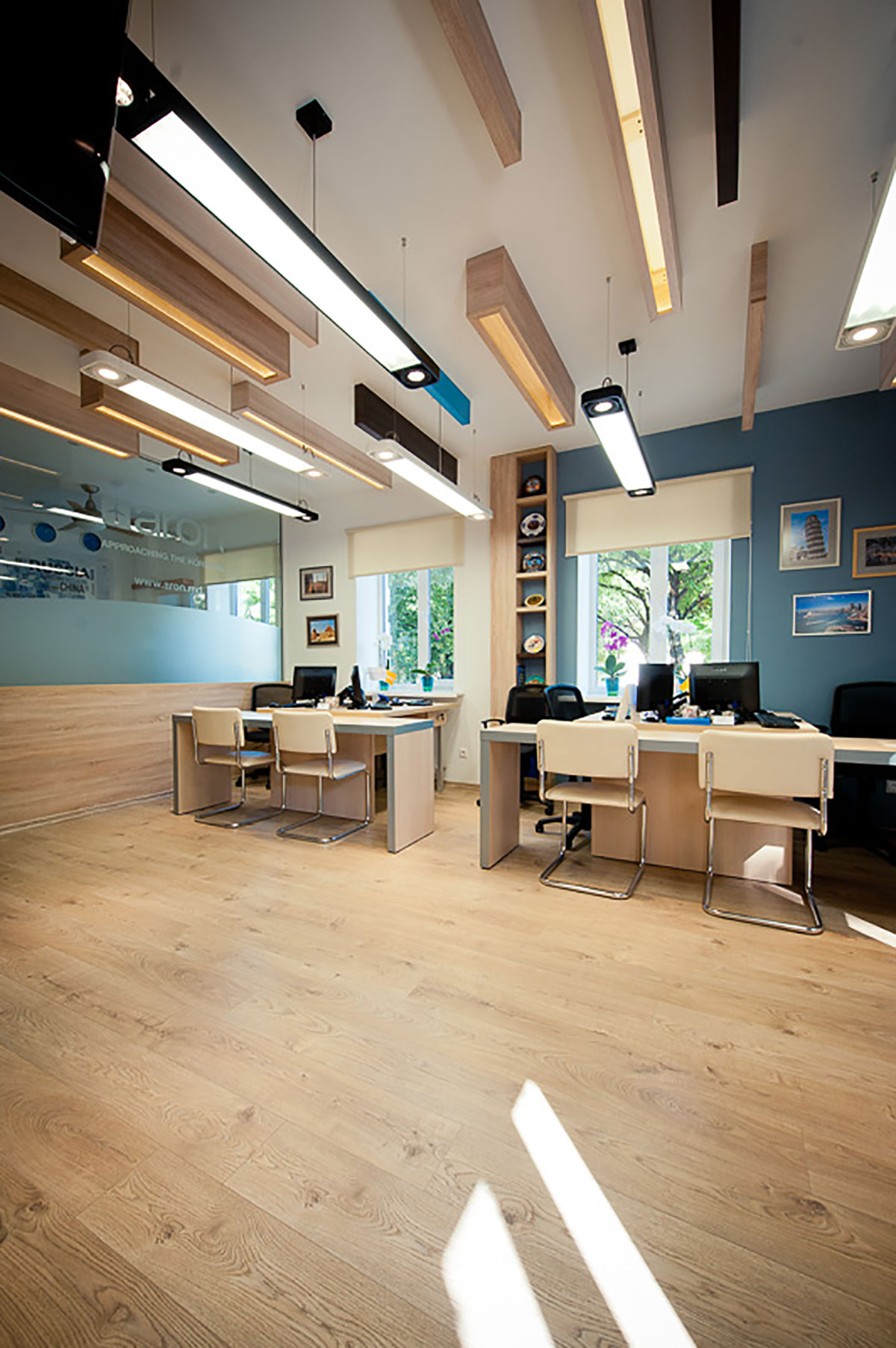 Workplaces should be arranged in such a way that every employee has comfortable enough personal space. Furniture choice is very important. Furniture should not impede movements; it should follow human ergonomics. We touch furniture articles within the entire day and they create our emotional and tactile memory. When arranging the furniture articles within the office, it is preferably to take into account the laws of merchandizing, i.e. how clients and personnel will move within the office, to select technologies for building effective communications between the seller and buyer.