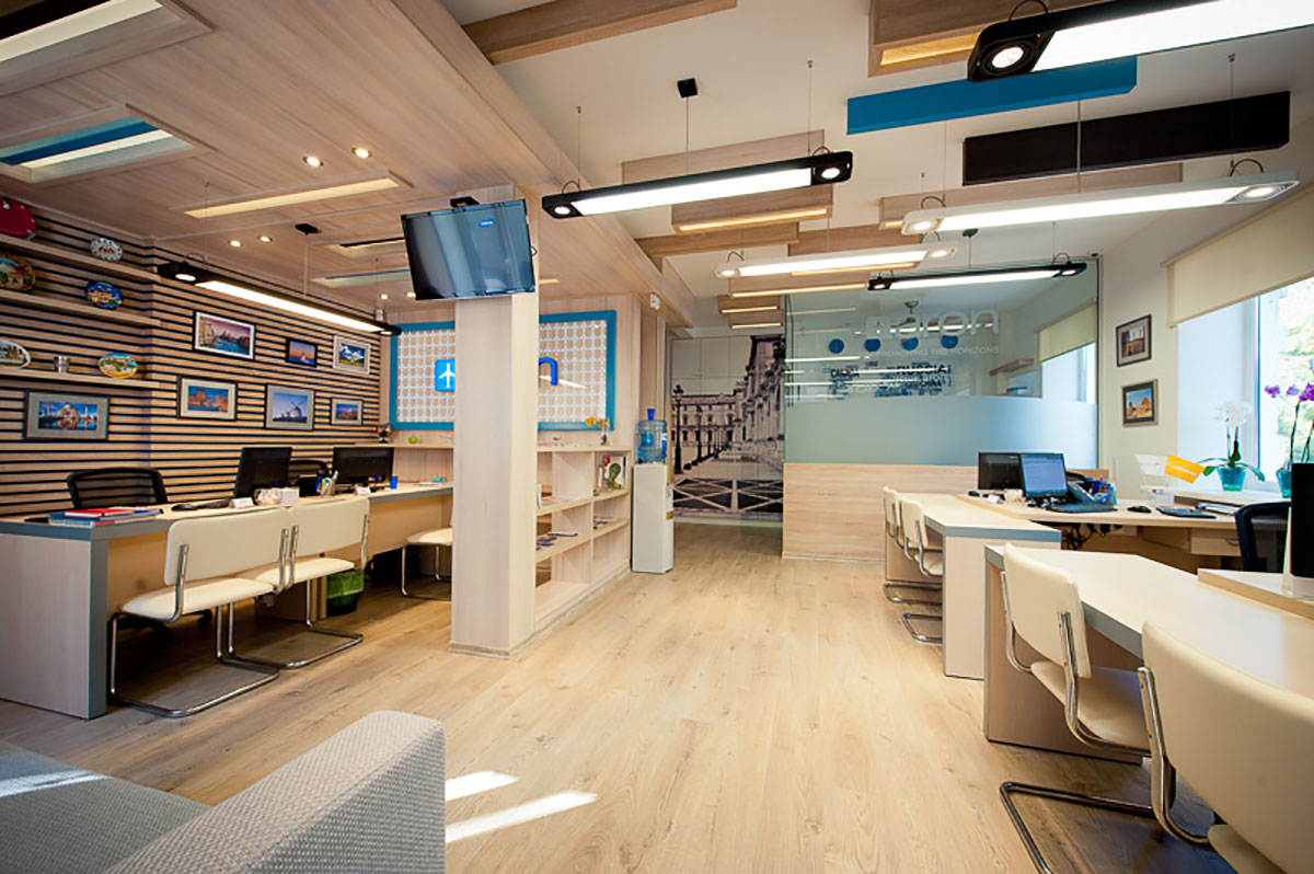Of course, the first and basic principle is to take care of employees. According to the studies carried out in London, uncomfortable and impersonal offices reduce personnel working efficiency up to 40%. A well-thought-through design is required to create a working environment, where contracts are made with pleasure, where personnel are communicable and work effectively.